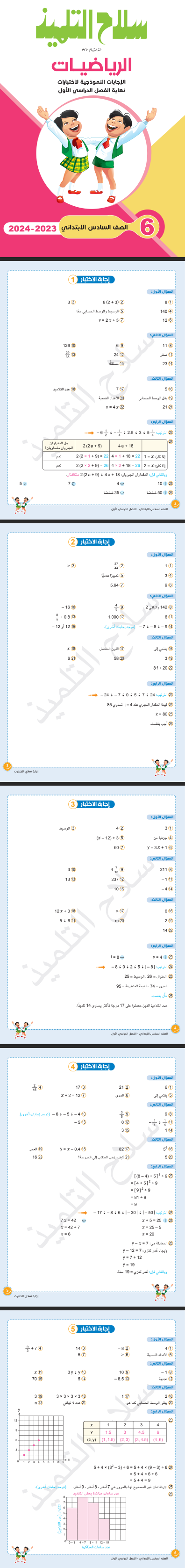 الاجابات النموذجية نماذج اختبارات سلاح التلميذ رياضيات الصف السادس ترم اول 2024 بالاجابات pdf
